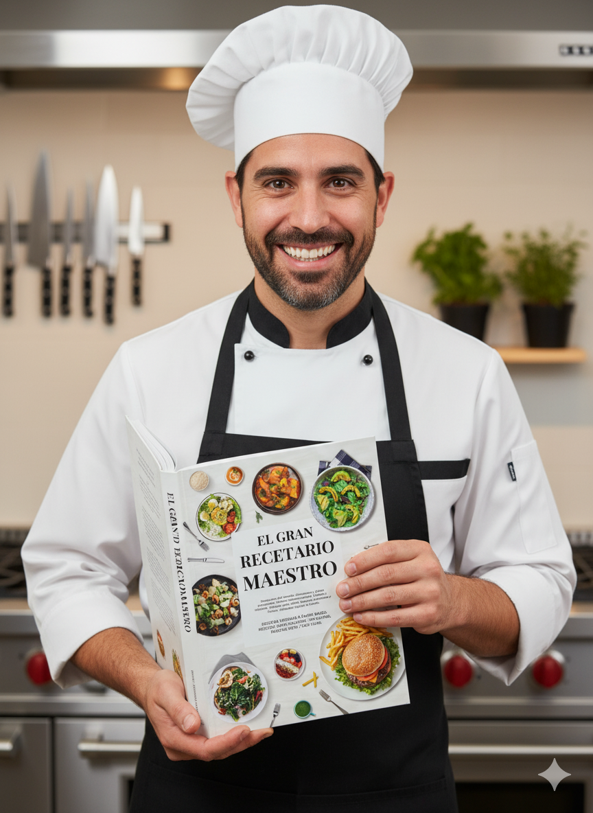 Descubrí el Gran Recetario Maestro y transformá tu cocina en un verdadero restaurante en casa. Con más de 365 recetas deliciosas, desde platos internacionales, postres, snacks y bebidas hasta opciones keto, vegetarianas y sin gluten, nunca te faltará inspiración.